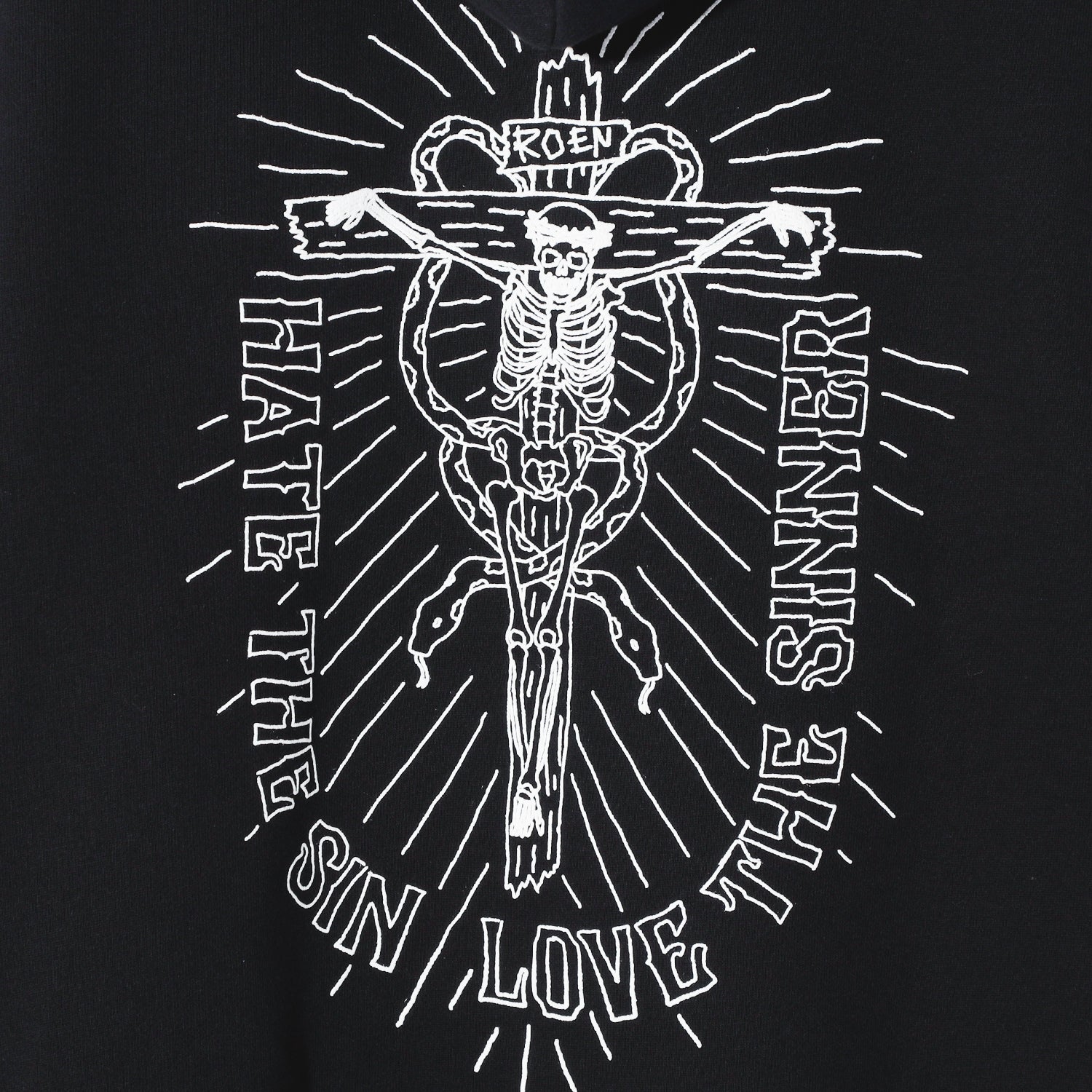 ■comment南米のカルチャーからインスパイアされた独特なグラフィックのマリアパーカー。袖にはROENロゴとスカルを配置。発砲プリントにより、刺繍を表現したデザイン部分は洗っていくことに経年変化を楽しんで頂けるギミックに仕上がっております。ボディはコンテンポラリーなビッグシルエットを採用し、ゆったりと着こなせる1枚に仕上がっております。