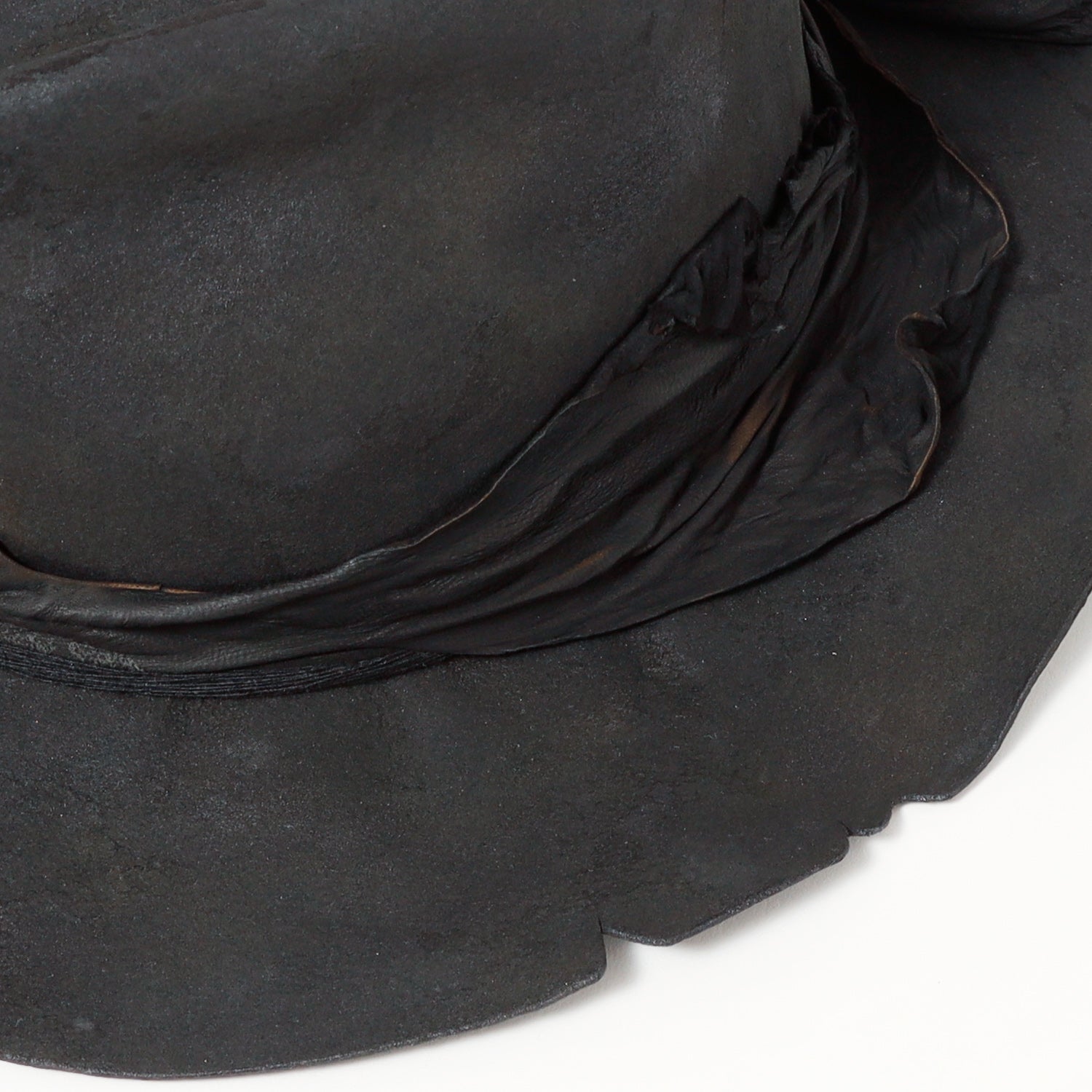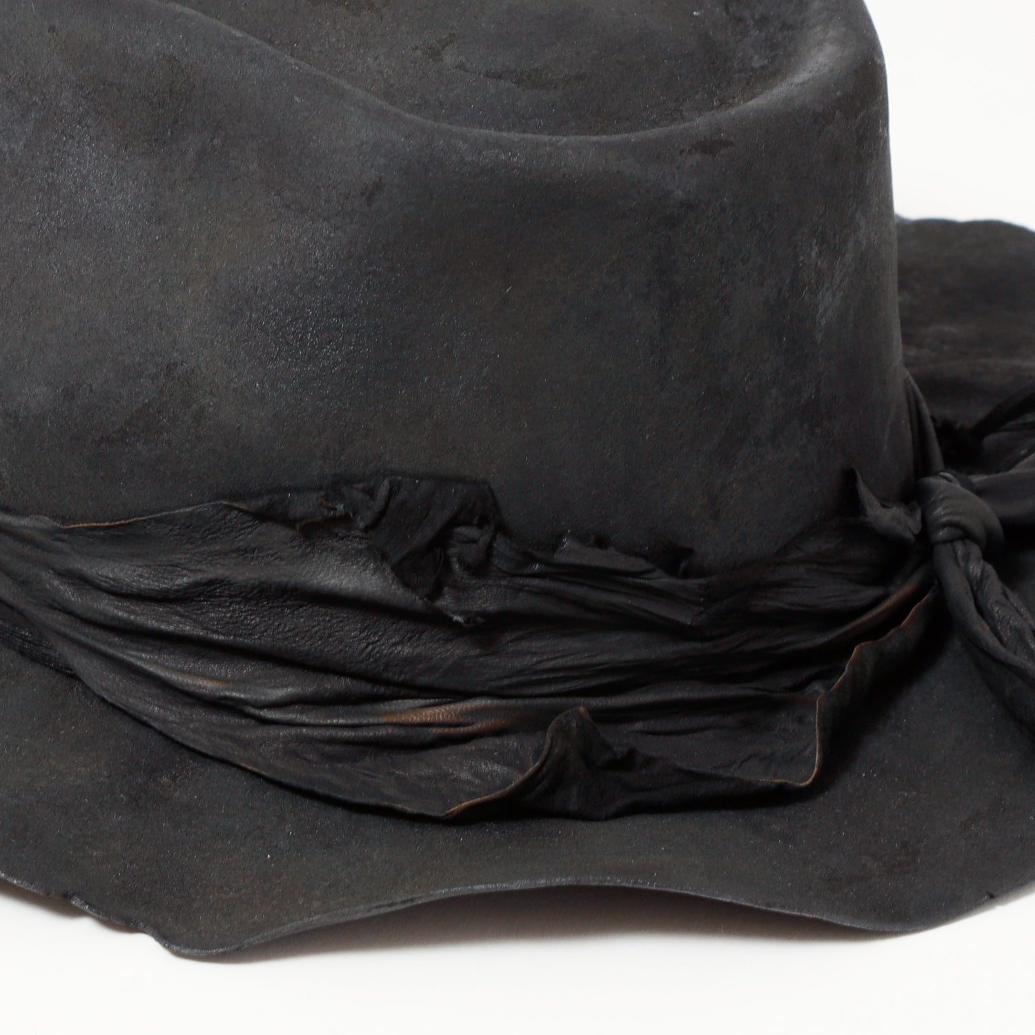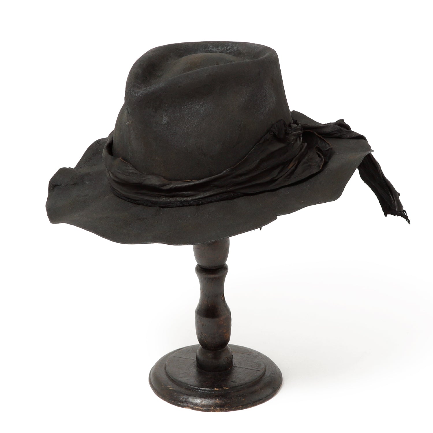 ラビット帽体を、炭のような雰囲気になるまでバーン加工した「charcoal」シリーズの中折れハット。