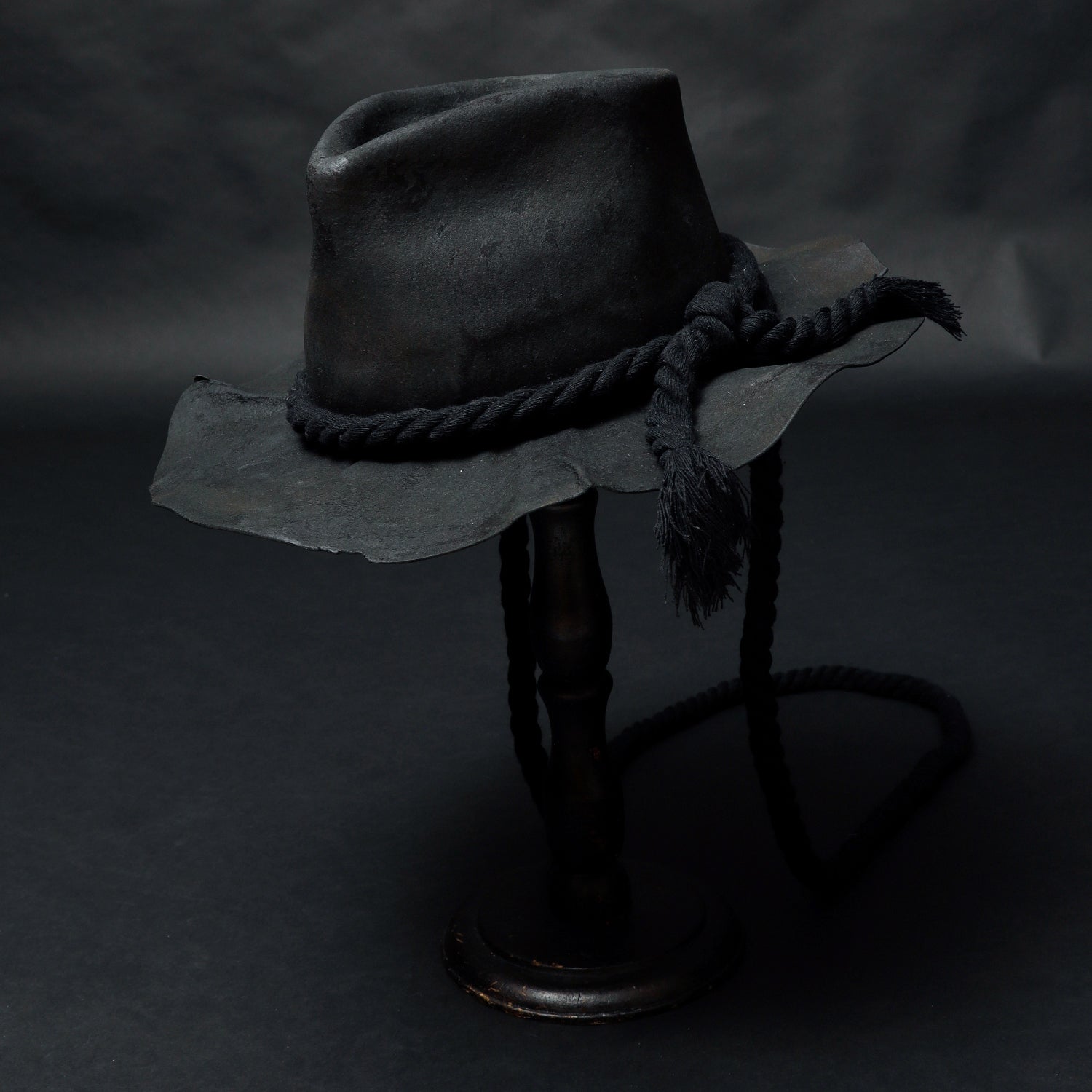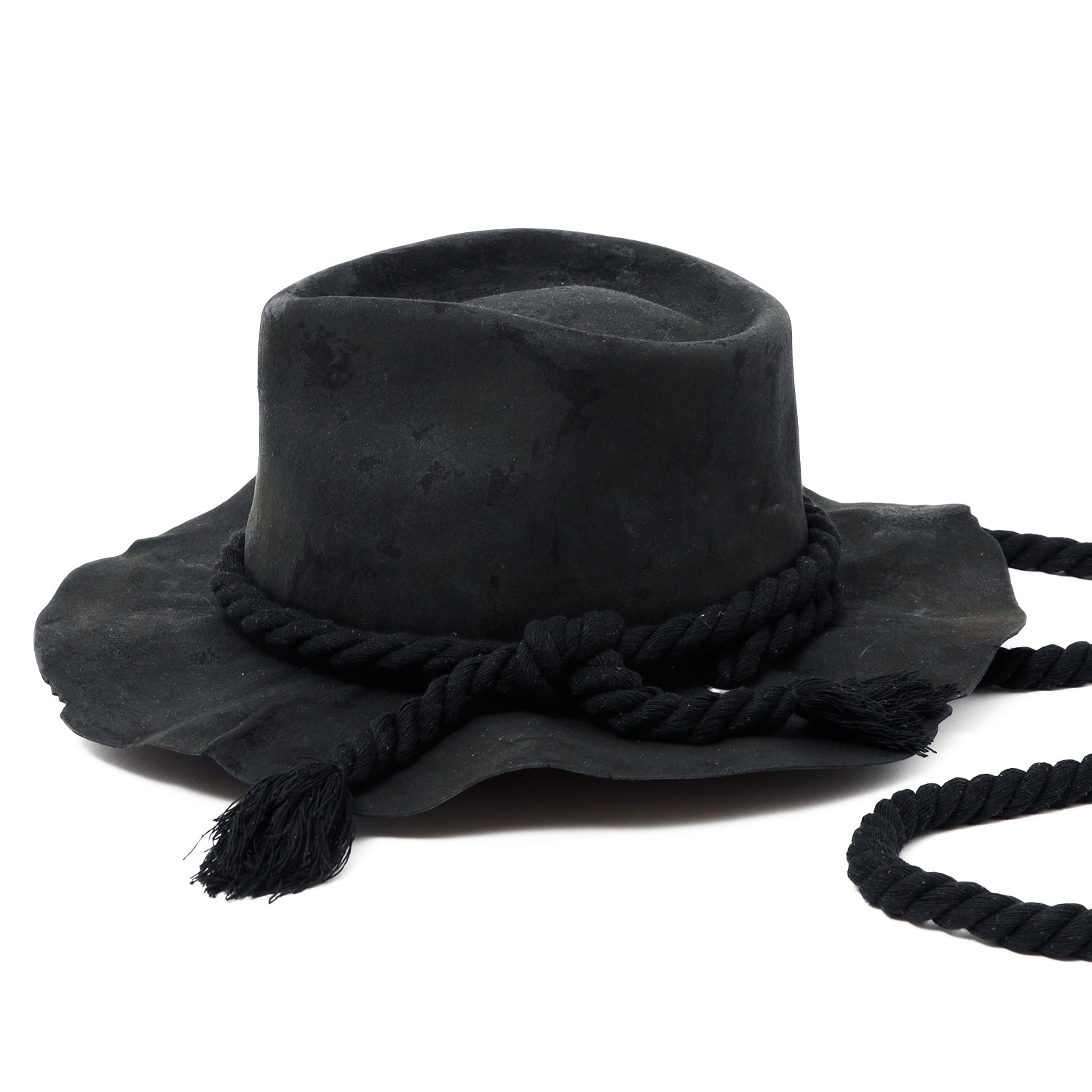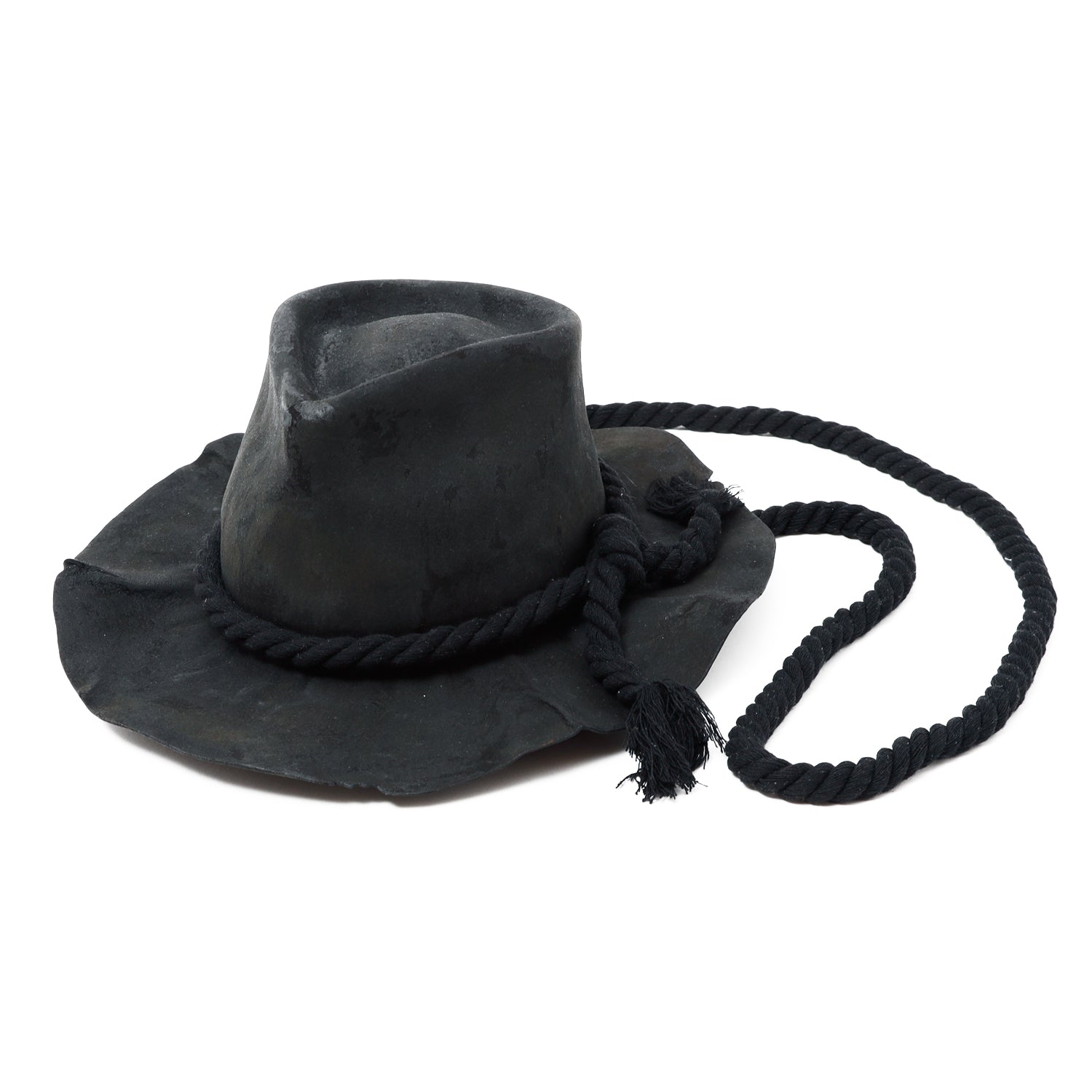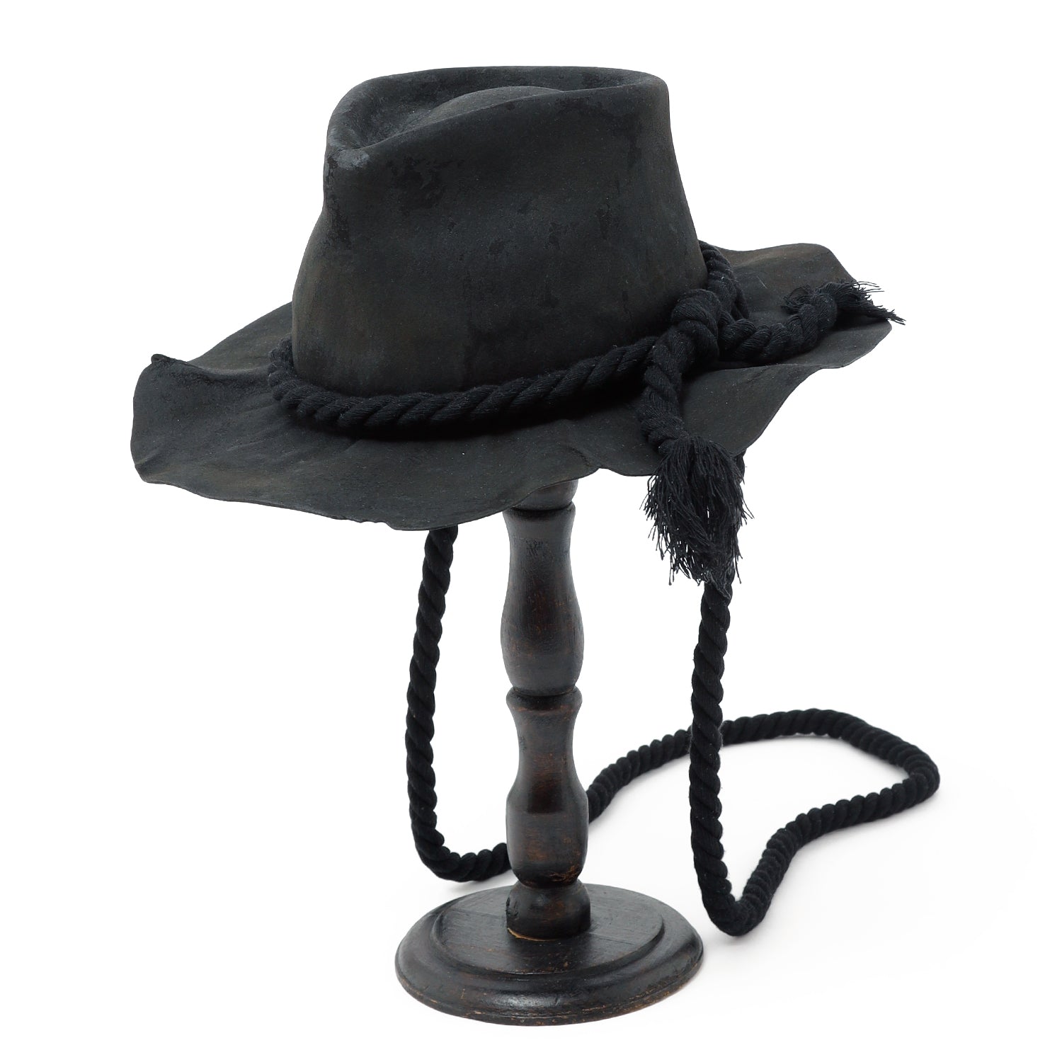 ■MATERIAL本体:ラビット飾り:ロープ、ハトメ■SIZE57.5cm~59cm(サイズ調節すべり付き)長さ/クラウンのフロント11.5cm、ブリム8cmラビット帽体を、炭のような雰囲気になるまでバーン加工した「charcoal」シリーズ。特殊な保護剤を付けて、加工がとれづらくしています。耳の後ろから垂れていくように、ブリム(つば)にロープを通しています。※水や湿気に大変弱く、濡れると型崩れや色落ちをする可能性があります。雨などは避けてご使用ください。※手作業の製作してるため商品によって個体差がございます。