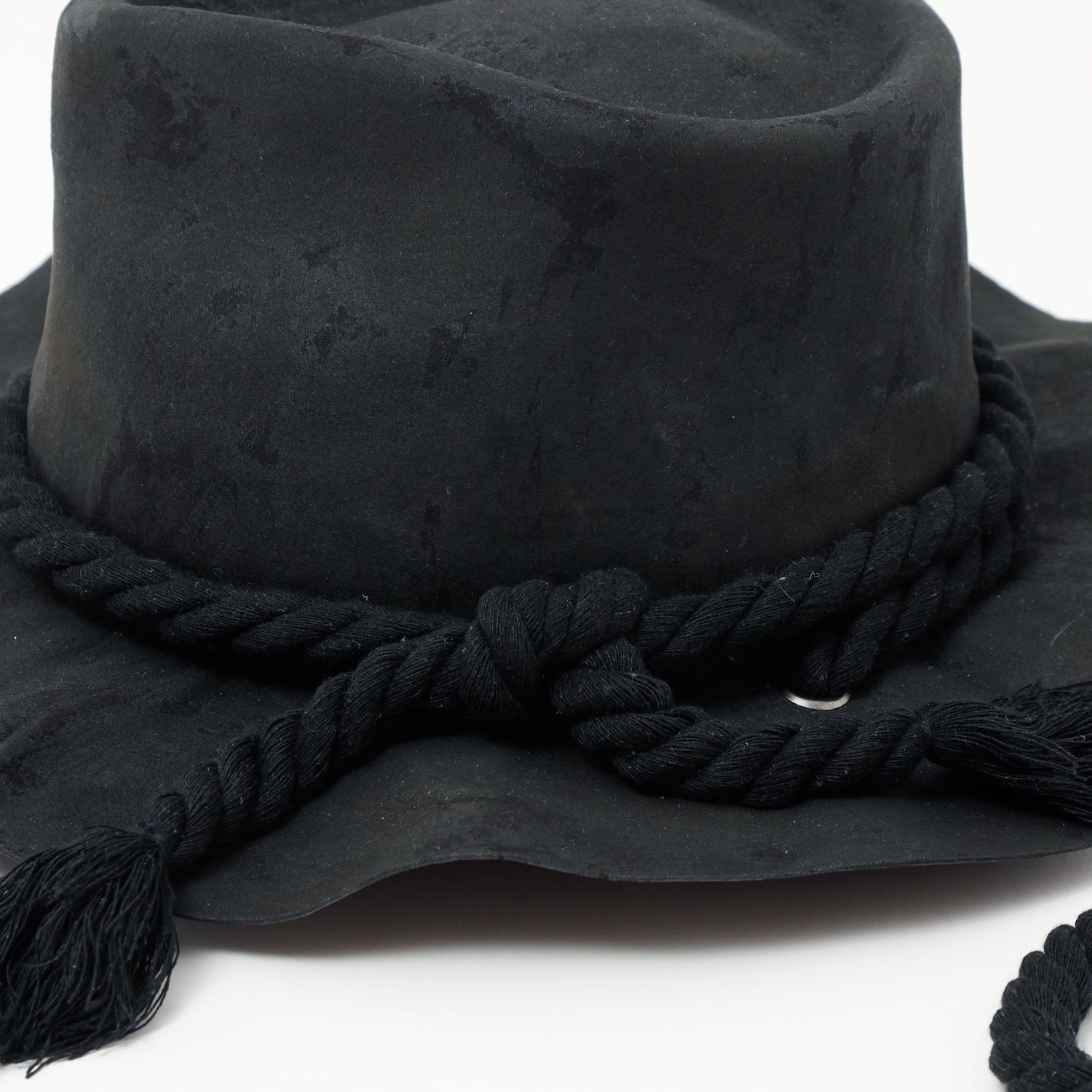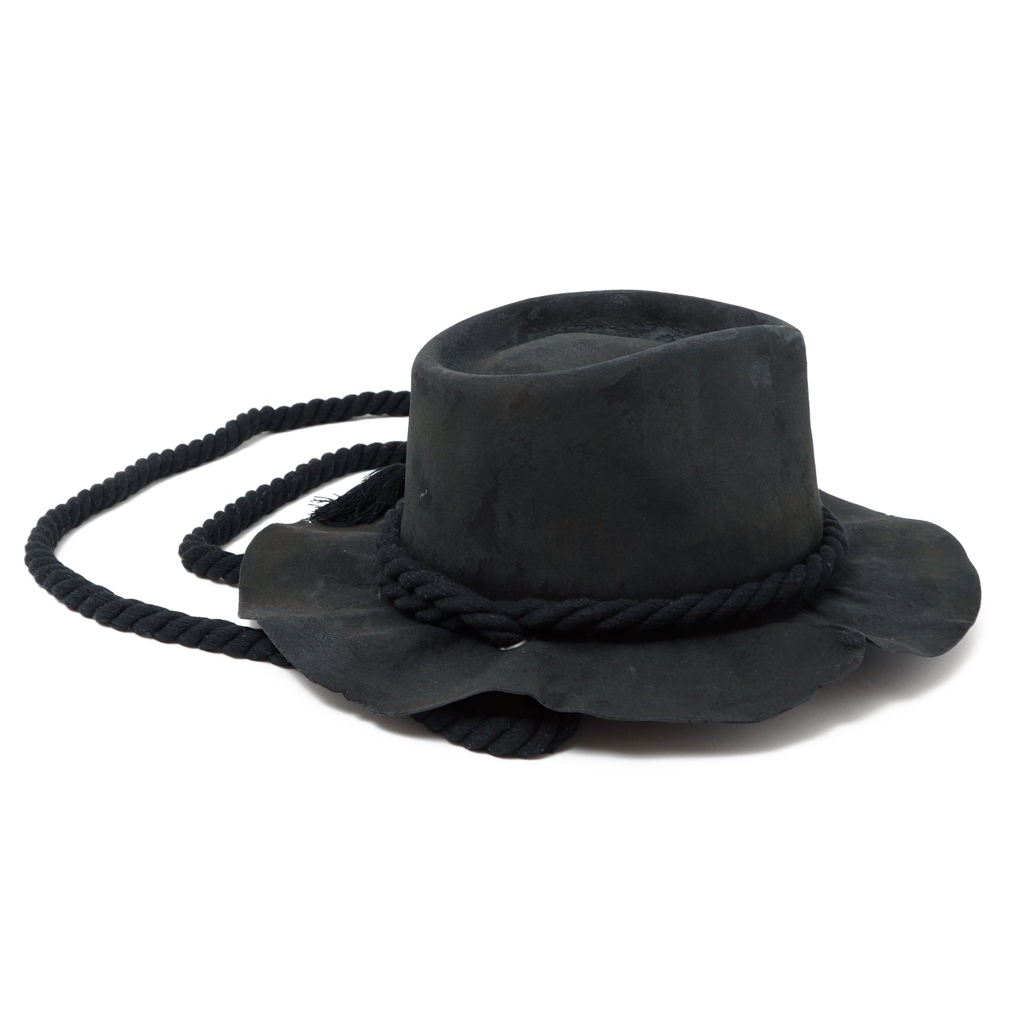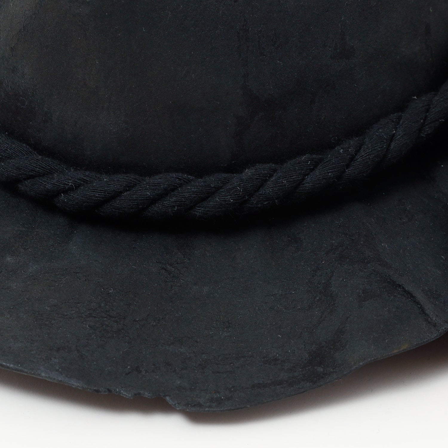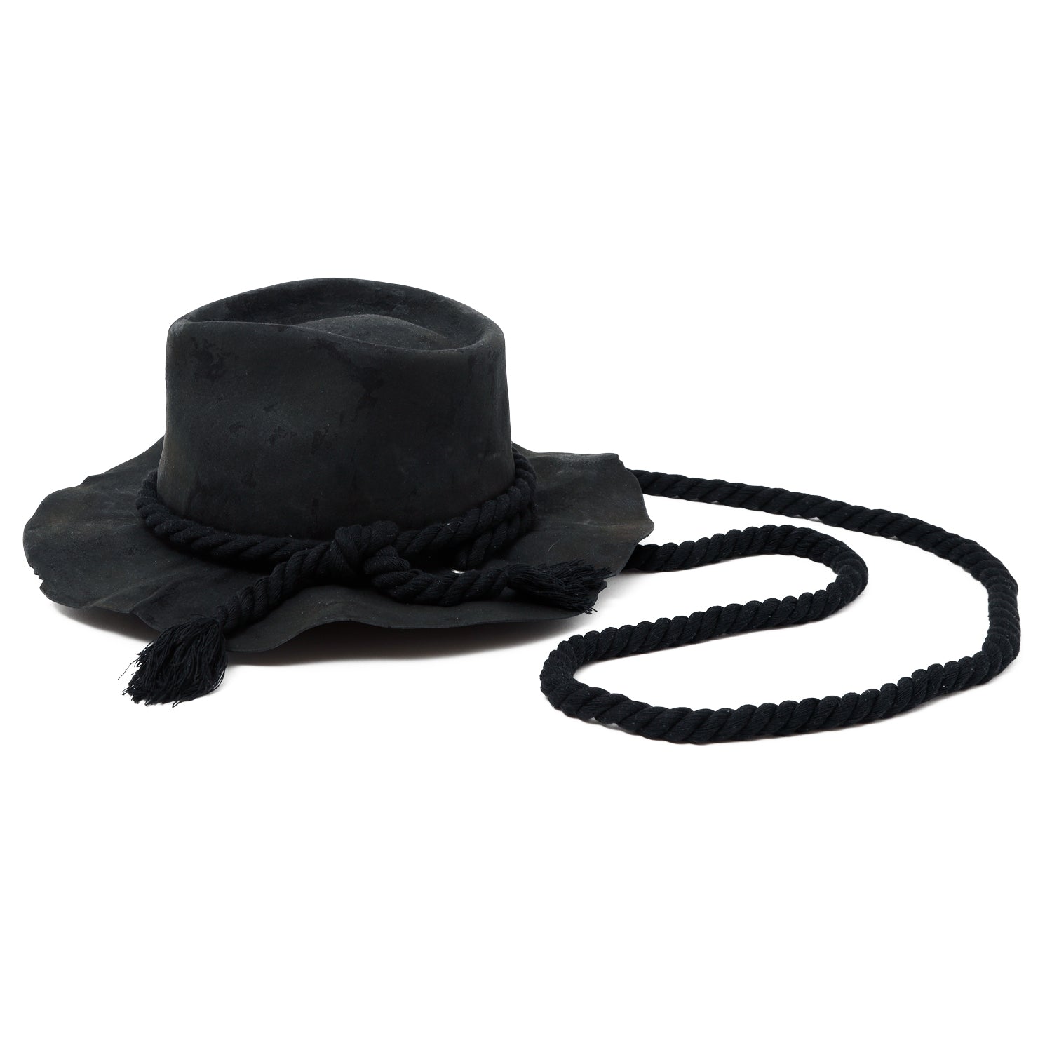 ■MATERIAL本体:ラビット飾り:ロープ、ハトメ■SIZE57.5cm~59cm(サイズ調節すべり付き)長さ/クラウンのフロント11.5cm、ブリム8cmラビット帽体を、炭のような雰囲気になるまでバーン加工した「charcoal」シリーズ。特殊な保護剤を付けて、加工がとれづらくしています。耳の後ろから垂れていくように、ブリム(つば)にロープを通しています。※水や湿気に大変弱く、濡れると型崩れや色落ちをする可能性があります。雨などは避けてご使用ください。※手作業の製作してるため商品によって個体差がございます。